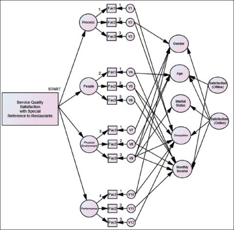 In the food service industry, both the quality of products and the standard of service are vital in determining customer perceptions and satisfaction levels. This study aims to explore the major factors that affect service quality in Indian restaurants and examine their influence on customer satisfaction (Berezina, 2010, International Journal of Contemporary Hospitality Management, 24[7], 99–1010). The study seeks to assess service quality and customer satisfaction levels through the application of factor analysis, correlation and regression techniques. Data were collected from 630 randomly selected customers, and the analysis was conducted using IBM SPSS Statistics 24 and AMOS (Adriatico, Razalan, Pagbilao, Afalla, & Dela Cruz, 2022, Academic Journal of Interdisciplinary Studies, 11[3], 30). The key service quality dimensions were classified into four categories: Process-related (take-away order system, order tracking, food preparation time), people-related (customer focus, peer influence, special attention to customer needs), physical environment (walking space, restaurant design, directional signage) and performance-related (food temperature, presentation, portion size) (Abdul Razak, Mohd Aminuddin, & Ghazali, 2019, Progressing Beyond and Better: Leading Businesses for a Sustainable Future, European Publisher). Weighted means were employed to describe service quality and customer satisfaction, while multiple regression analysis was used to determine the predictors of satisfaction. A structured model was then developed to offer a framework for enhancing service quality in the restaurant sector. Focusing on these critical dimensions enables businesses to improve customer satisfaction, foster loyalty and achieve sustained success.