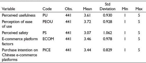 Table 5 presents correlations between the variables, with the strongest correlation between PS and purchase intention of Vietnamese consumers on Chinese cross-border e-commerce platforms (PICE).