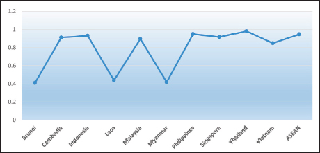 India’s RCA with the ASEAN is presented for 23 distinct commodity groups taken for the study. This reveals the potential for India’s trade with the ASEAN and the presence of complementarity in the product category. The analysis of the stability index and the Coefficient of Variation values also presents a fairly stable situation of the commodity category taken for the study. The revealed trade potential can be taken to tap the untapped trade potential with the ASEAN partners. ASEAN has been one of the four among the focus regions for India. Sharing the same culture and rituals, the eastern part of India has been the gateway for trade with the ASEAN countries. India shares maritime borders with Indonesia and Thailand and a land border with Myanmar. With the strengthening of infrastructure and logistics in the Eastern states, the trade potential with the ASEAN partners can be accelerated. India and ASEAN has signed some important agreements as Comprehensive Economic Cooperation Agreement in 2010 with the ASEAN, where both the regions agreed to reduce and eliminate duties from both sides significantly on 76.5% of goods and liberate the tariffs for more than 90% of goods, trade has increased for exports for over 23% and imports by 55% during the past decade. Similarly, India–Singapore FTA, India–Malaysia FTA and India–Thailand Early Harvest Scheme have all acted towards integrating India’s trade with the ASEAN partners. The analysis from the current study also confirms a growing intensity of India’s trade with the ASEAN partners.