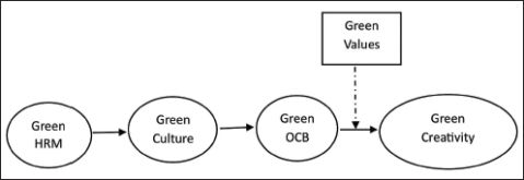 There are various ways by which green human resource practices induce green behaviour among employees, such as green culture, green values and green organisational citizenship behaviour (OCB). A number of studies (Harris & Crane, 2002; Holt & Anthony, 2000; Kramar, 2014; Mandip, 2012) have confirmed a significant relationship among all these through various mediation and moderation approaches. Through their attitudes, values, beliefs and activities, members of green culture organisations demonstrate a care for the environment (Roscoe et al., 2019). Here, values mean ‘what internal customers (employees) consider moral and ethical for the ecology’ (Harris & Crane, 2002; Holt & Anthony, 2000). Studies by Valsiner (2014), Ratner (2017) and Gl