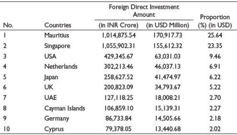 Table 3. Investment Data from the Top 10 Countries in India (Cumulative from April 2000 to December 2023).