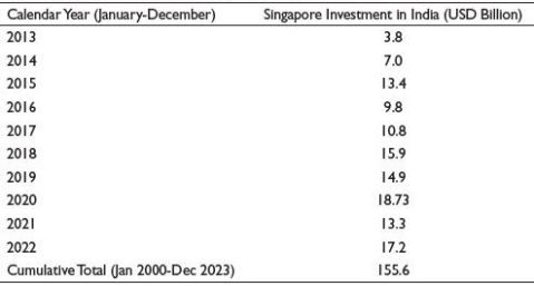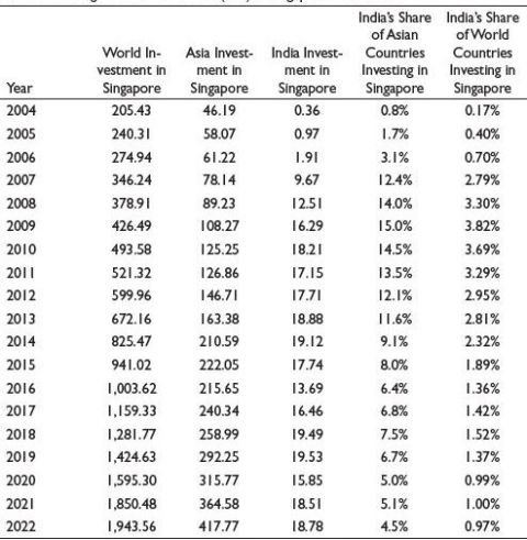 Statista. (2024). Foreign direct investment inflow from Singapore to India from 2013 to 2022, with an estimate for 2023.